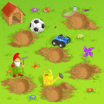 Wo sind denn nur die leckeren Knochen vergraben? Unermüdlich rennen Bella und Bello hin und her und buddeln und graben ? Ein Geschicklichkeitsspiel bei dem man die Nerven behalten muss, denn ruft ein Spieler „Wau, wau“ ist auch schon der Nächste dran mit Buddeln.